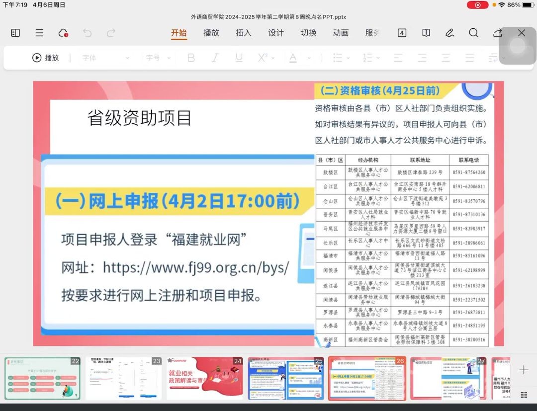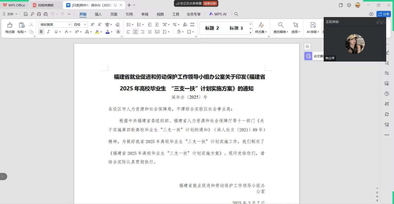 在这个充满机遇与挑战的毕业季,为帮助毕业生们更好了解就业形势,把握就业政策,外语商贸学院于2025年4月6日晚点时间为毕业班学生开展“就业政策宣传”的主题教育,由毕业班辅导员主讲,宣传内容包括就业创业补贴、创业奖励、毕业生身份认定、三支一扶政策等。