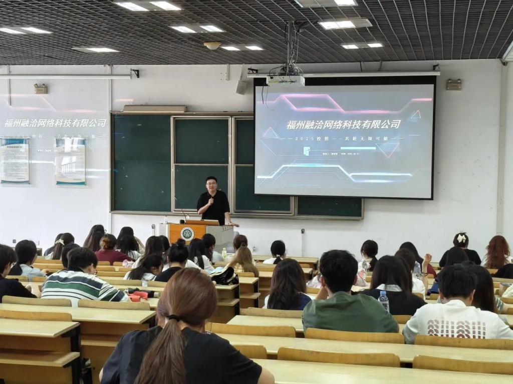 福州融洽网络科技有限公司作为我校优秀校友企业,专注于美区跨境运营与国内直播业务领域。宣讲会上,莫佳荣总经理详细介绍了公司的发展历程、业务范围以及未来规划,分享了公司在跨境电商领域的成功案例。他表示公司高度重视校企合作,希望通过建立校企合作工作室,为学生搭建实习就业平台,推动理论知识与实践技能深度融合,助力学生职业发展,培养适应市场需求的专业人才。