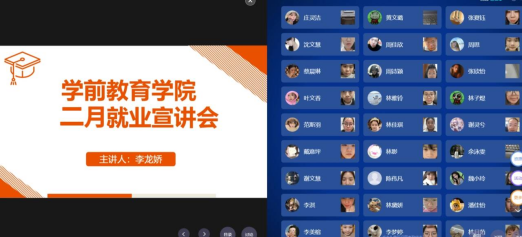 为帮助2025届学前教育学院毕业生深入了解行业需求,拓宽就业渠道,实现毕业生高质量就业,2月23日下午,学前教育学院成功举办了2025届毕业生“青春逐梦 ‘职’引未来”线上就业宣讲会,2025届全体毕业生参加本次会议,会议由毕业班辅导员李龙娇老师主持。