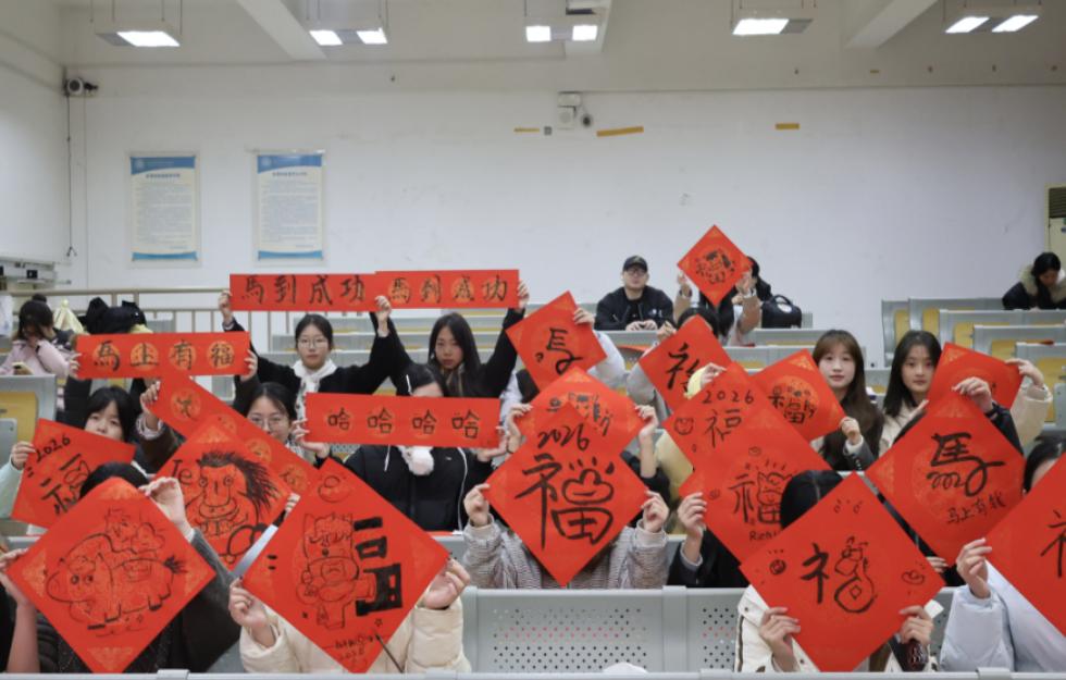 为缓解学子们的考试压力与思乡之情,弘扬中华优秀传统文化,1月11日,我院在教学楼2014教室举办了一场别开生面的“笔绘春联”创意活动,为校园增添了浓浓的节日氛围。