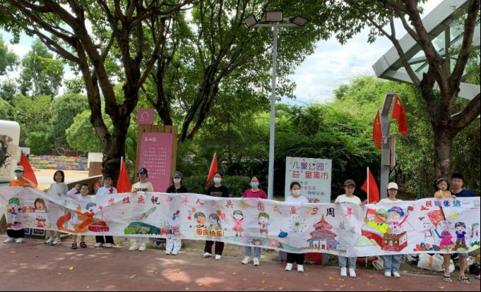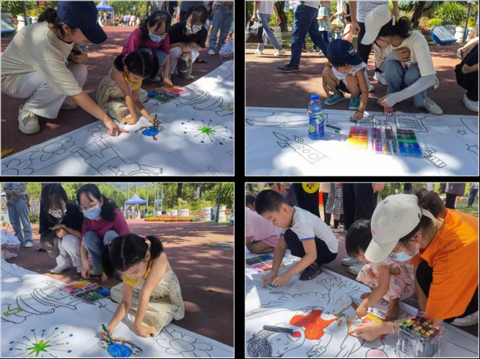 10月3日上午,早期教育专业教研室主任华洁琼带领21级早教专业9名学生前往福州市儿童公园,参加由福州市早期教育指导中心举办的“红色基因,强国有我——30米长卷亲子绘画”早教入社区活动,与30余组家庭共同庆祝中华人民共和国成立73周年。