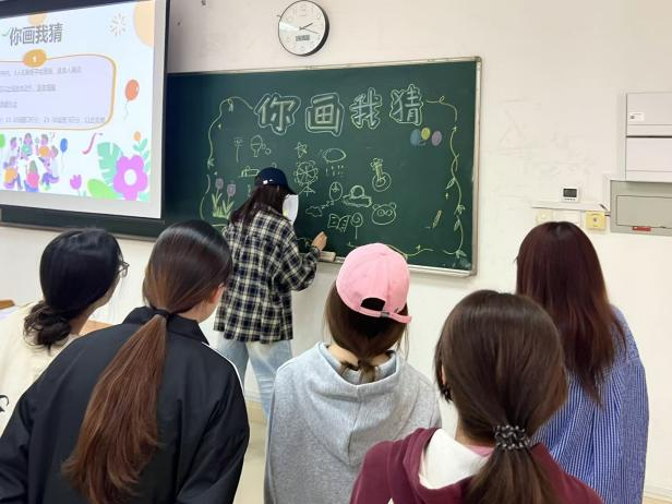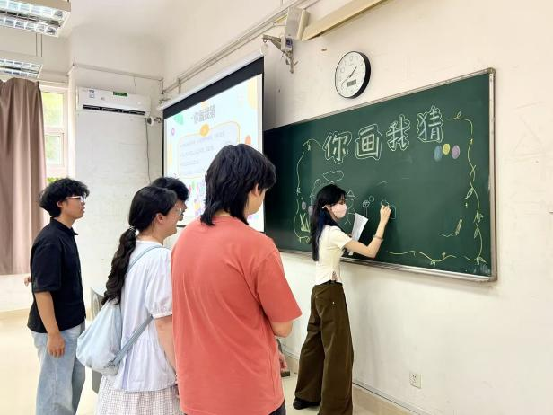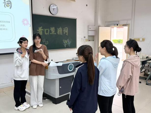 本次活动以团体赛为核心,设置了“看口型猜词语”“歌曲前奏抢答”“看图猜词”三大趣味关卡。三大环节层层递进,分别考验团队的非语言默契、快速反应能力以及创意联想水平。活动现场,同学们全情投入:有人因“对口型”的夸张表情笑成一团,有人为抢答歌名竖起耳朵、争先恐后,更有人对着图片脑洞大开、妙语连珠。欢声笑语中,同学们暂时卸下了繁重的课业负担,在轻松愉悦的协作中拉近了彼此的距离。
