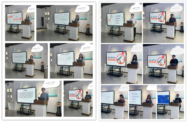 会议伊始,软件实训基地刘杰工程师首先对前端实训的意义、目标以及实训的教学任务做了概述,并针对前端实训模式、人员情况、学员们出勤情况和实训任务完成情况进行了汇报。随后,在前端一部项目阶段总结汇报中,17名学员上台逐个分享了在实训过程中所学到的知识、得到的收获、以及实践期间所遇到的困难与解决办法,并对自己的未来规划了短期阶梯式的目标,以及阐述了对生产实训课程的建议与期望。