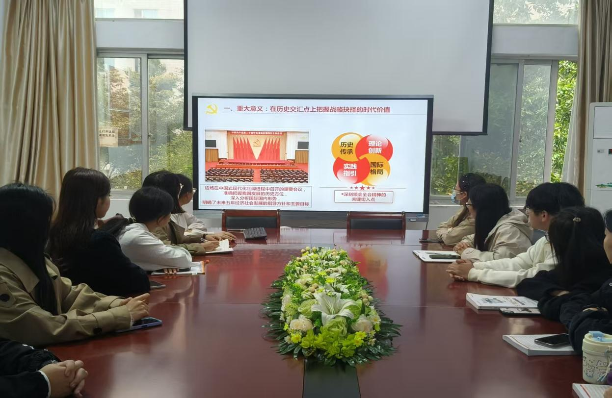 会上,李晶晶结合学生成长实际,对“人民生活品质不断提高”“青年人才培养”等民生与人才政策进行了解读,引导学生党员将个人发展融入国家战略。互动环节中,与会人员围绕“专业学习如何对接新质生产力培育”“党员如何在就业创业中践行全会精神”等问题展开深入交流。