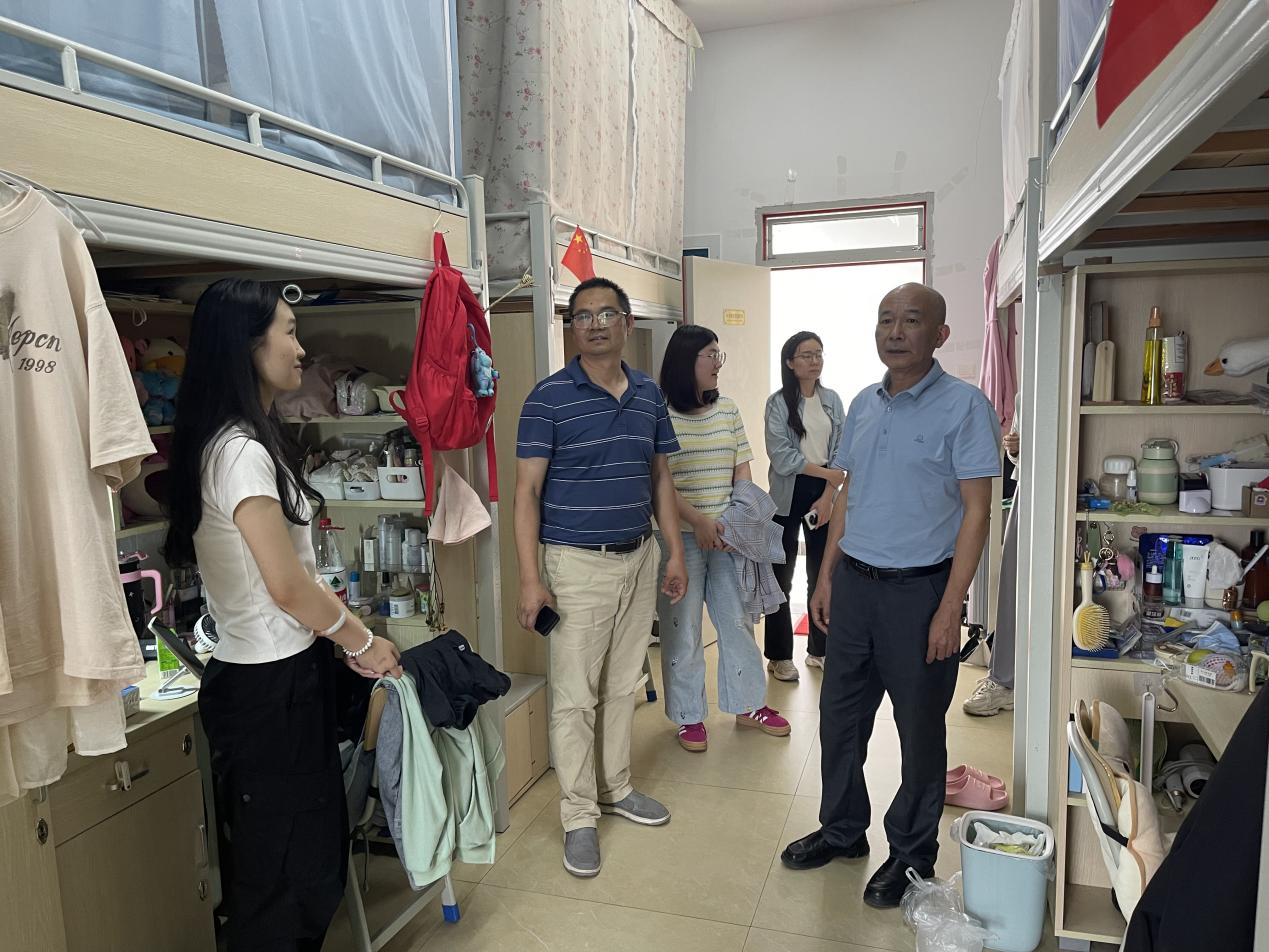 随后,陈欣书记一行来到毕业生宿舍,与2024届毕业生亲切交流,并关心和询问了就业升学情况。他表示,学院将一如既往地关注毕业生的就业工作,积极开展校企合作,搭建更多实习实践平台,助力同学们顺利实现就业目标。同时,他也勉励同学们能够树立正确的择业观念,勇于挑战自我,为实现自己的人生价值而努力奋斗。