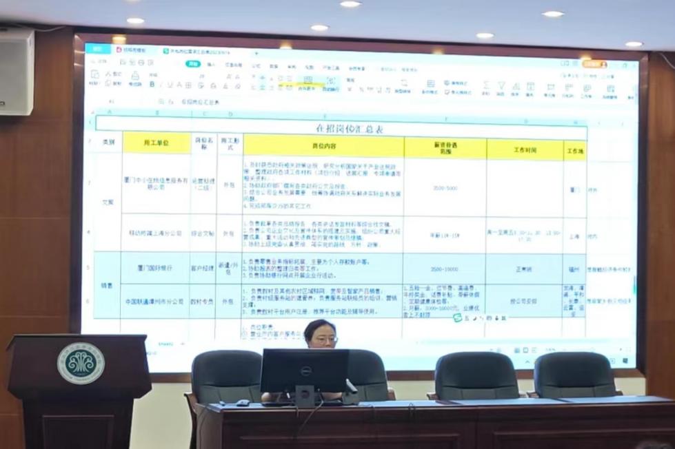 为搭建起学生与企业之间的桥梁,提升毕业生就业质量,我院于2023年9月21日晚,在校学术报告厅举办第二场2024届毕业生招聘会。三创联络员李晶晶、2024届毕业班辅导员傅丽群、2024届全体毕业生参加了本次招聘会。