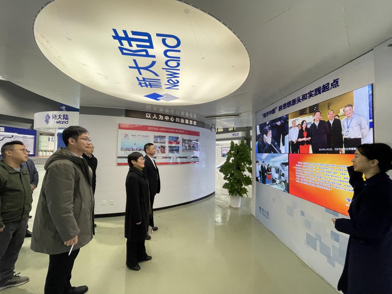江柳青一行先后走访了福建新大陆集团、福建新大陆时代科技有限公司、福建新大陆通信科技股份有限公司,参观了新大陆通信制造中心产线与新大陆集团技术成果、新思想成果展厅。