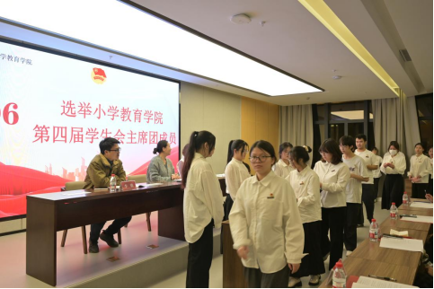 在选举环节,会议首先介绍了新一届学生会主席团预备人选及候选资格审议情况,审议通过了《小学教育学院学生代表大会选举办法》以及监票人、计票人名单,确保选举程序公平、公正、公开。在全程监督下,与会代表秉持严肃审慎的态度,认真了解候选人情况,依规进行无记名差额投票。经选举,李怡雯、林思涵、林燕姿三位同学当选为新一届学生会主席团成员。