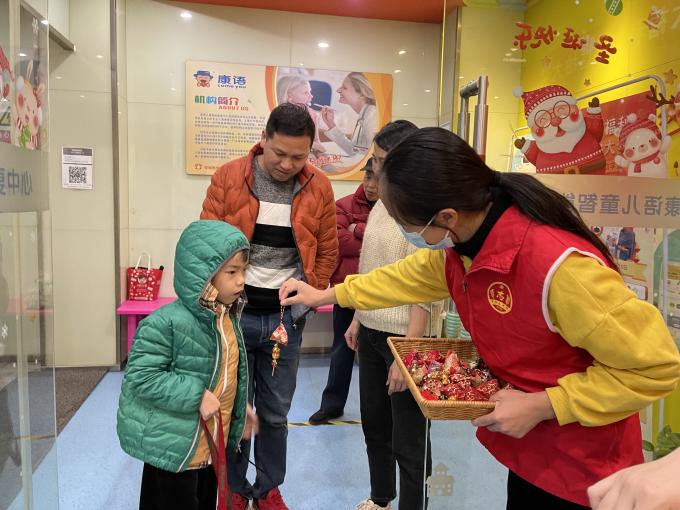 福袋是中国传统的吉祥物之一,它有着招财纳福、福传万代的美好寓意,从古至今就深受人们的喜爱。志愿者们和孩子们一起将糖果、橘子、巧克力、红枣等寓意美好的食物和祝福一起装进福袋,过程简单却不乏乐趣。小小的福袋里承载着新一年盈盈的祝福和满满的福气!