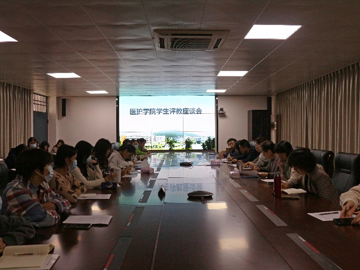 为切实提高教师教学质量,11月17日下午,医护学院在闽江师专福清校区行政楼二楼会议室召开学生评教座谈会。医护学院副院长吴国宝、各教研室正副主任以及各专业班干代表参加会议。会议由护理教研室主任许娟娟主持。