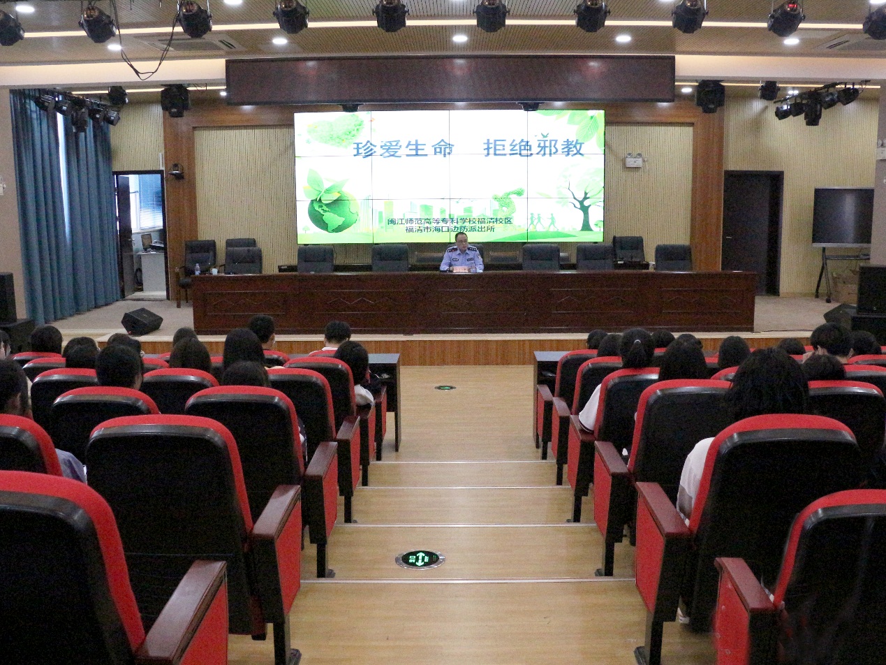 为进一步深化反邪教工作,增强学生防邪、反邪意识,营造浓厚的防邪、反邪社会氛围,构建和谐平安校园,10月27日下午,闽师专福清校区邀请福清海口边防派出所刘炜警官到校开展反邪教宣传活动。
