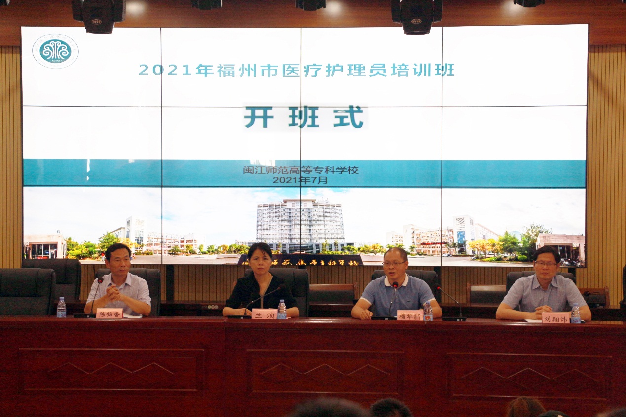 7月5日上午,2021年福州市医疗护理员线下培训班开班仪式在闽江师范高等专科学校福清校区信息楼四楼学术厅举行。闽江师范高等专科学校继续教育中心主任兰浈,闽江师范高等专科学校医护学院院长刘翔炜、福州市卫健委医政处处长檀华楷、闽江师范高等专科学校医护学院副书记陈锦香、带教老师及130名学员参加了会议。会议由刘翔炜院长主持,兰浈主任致欢迎词。