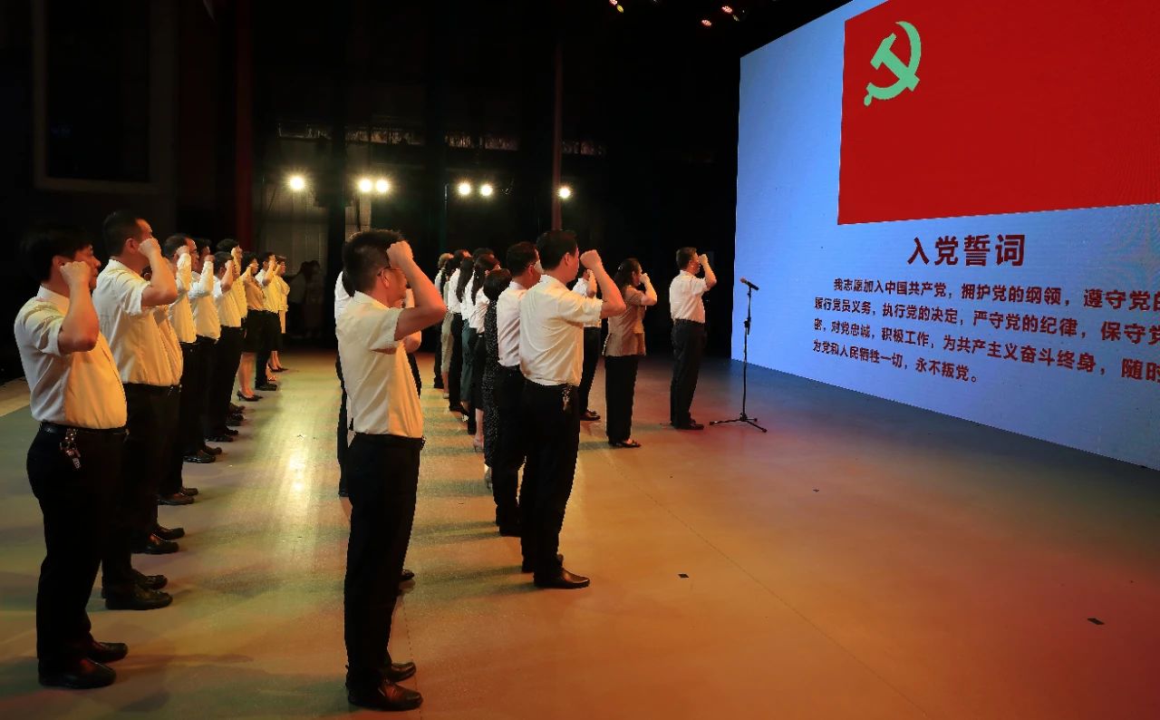 大会开始前,陈荣生书记带领全体党员,高举右手,面对鲜红党旗重温入党誓词,共同表达对党的无限忠诚与热爱。