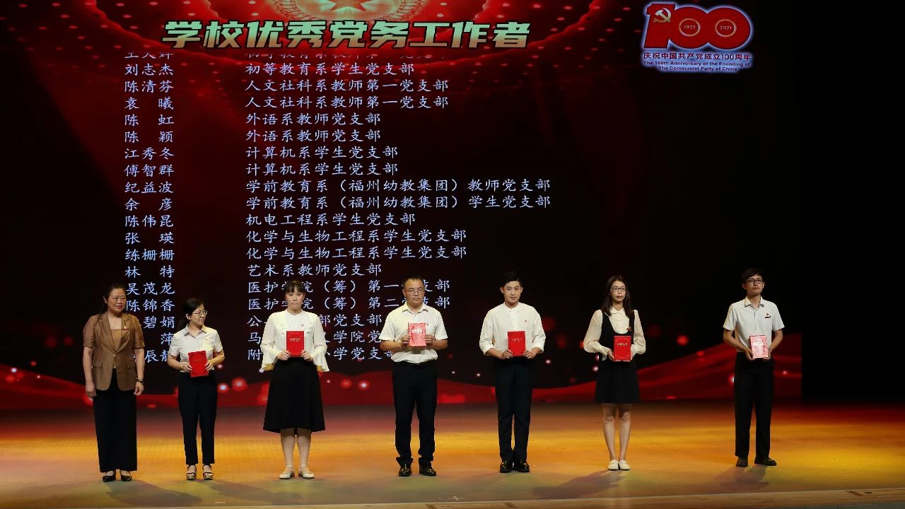 7月2日下午,闽江师范高等专科学校在旗山校区学术报告厅举行庆祝中国共产党成立100周年暨“两优一先”表彰大会。校党委书记陈荣生,校党委副书记、校长杨建义,校党委委员、副校长林旻,“光荣在党50年”老党员代表,师生党员代表共计400余名参加大会。大会由杨建义校长主持。
