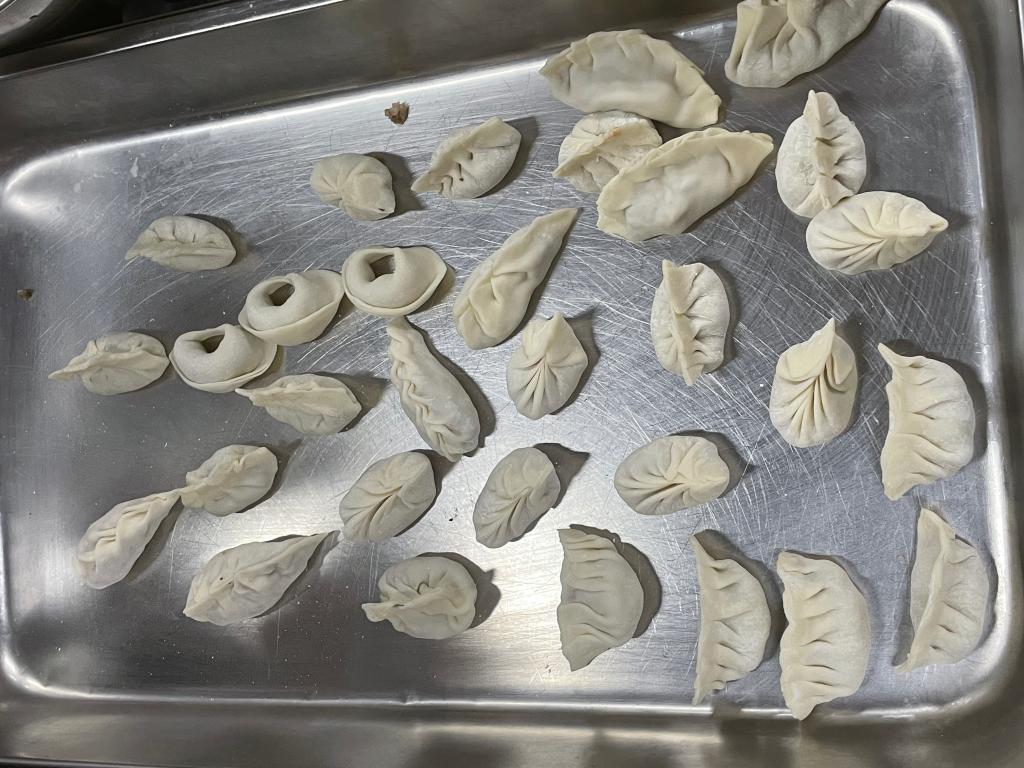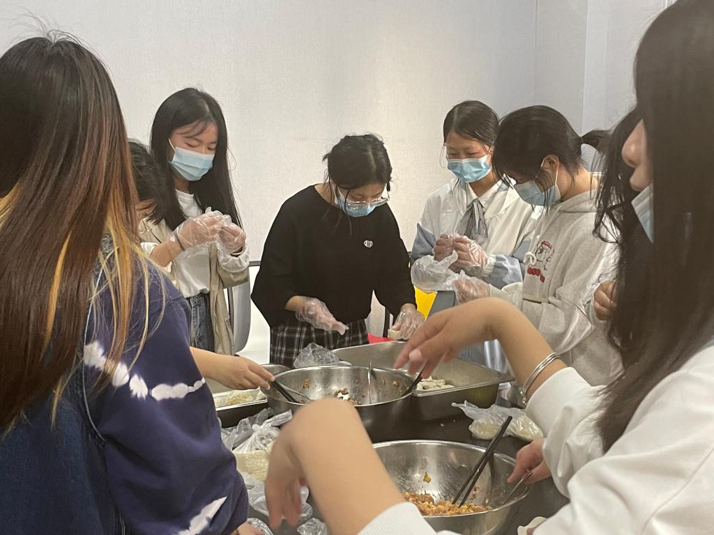 劳动周期间,在老师的组织下,21护理3班全体同学一起包饺子,通过自己动手让同学们学习到饺子里包含的营养及文化。大家围在一起开始亲手实践,两个大盆装的馅,每个人都别出心裁地包着饺子并设计成各种形状,有精致小巧的柳叶饺,有个大饱满的东北饺,还有可爱的“小胖饺”。同学们互相帮助,气氛融洽,渐渐也能熟练地包出漂亮的饺子。