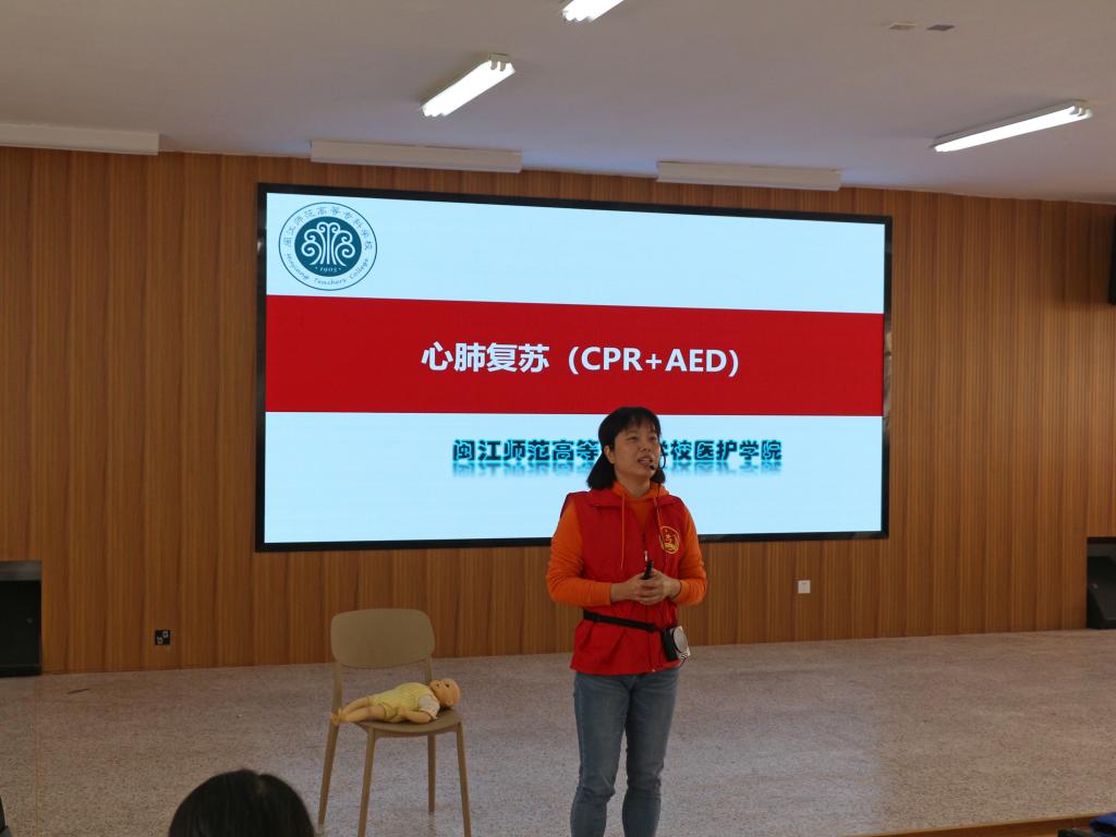 医护学院发挥专业优势,在福清校区周边为学校教师、民众普及应急救护知识。