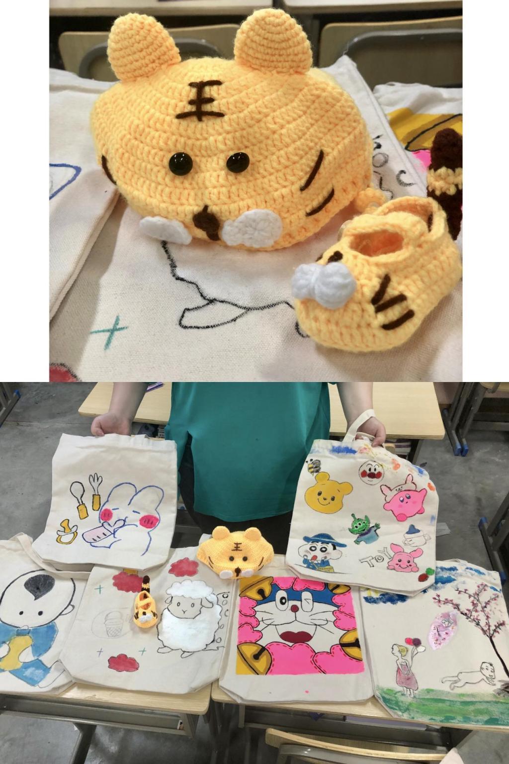 除了给小婴儿送祝福,21助产2班的同学们也给妈妈们准备了一份爱和温暖,同学们将帆布包绘制成妈咪包,在实践中感悟妈妈的不易。愿天下母亲都能被时光温柔以待。