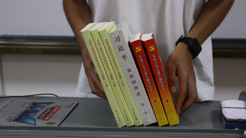 活动现场,同学们阅读《习近平谈治国理政》第三卷、《习近平新时代中国特色社会主义思想三十讲》、《党的十九大报告辅导读本》等学习书籍,并纷纷表示要多读书、读好书、会读书,要持续认真研读习近平总书记关于治国理政的专著和系列重要讲话,坚定理想信念,做合格大学生。