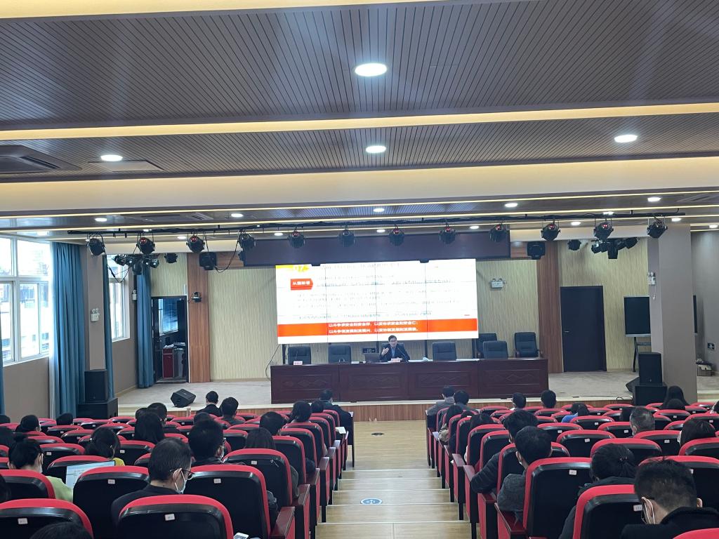 刘翔炜副校长结合自身学习体会,围绕深刻领会党的二十大的重大意义,按照“五个牢牢把握”的要求,从深刻领会党的二十大的主题、深刻领会过去5年的工作和新时代10年的伟大变革、深刻领会开辟马克思主义中国化时代化新境界、深刻领会中国式现代化的中国特色和本质要求、深刻领会对未来五年党和国家各项事业发展的战略部署、深刻领会坚持党的全面领导和全面从严治党的重大部署、深刻领会团结奋斗的时代要求、深刻认识教育、科技、人才作为现代化国家支撑的重要性等八个方面对党的二十大精神进行了全面宣讲和深入解读。