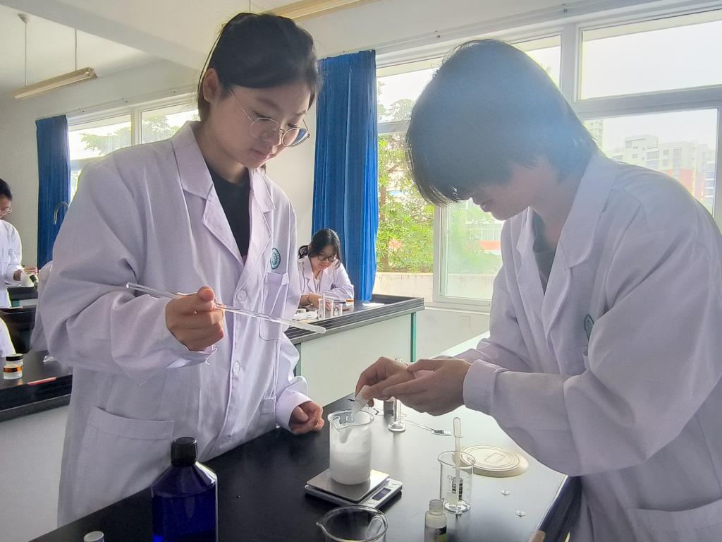 5月24日,在药学老师卢雅英的带领下,开展了以“‘手'护健康,传递温暖”为主题的特色劳动实践活动。 活动中,卢雅英老师给大家讲解护手霜的制作流程和制作护手霜的制作原理,并强调了实验安全注意事项。活动过程中,学生以宿舍为单元,分为9个小组,每个小组成员各司其职,在老师的指导下,共同制作了三种护手霜。这三种护手霜各有其独特的成分和功效,玫瑰护手霜含有玫瑰精油,具有舒缓、滋润和保湿的功效,能够有效地改善手部皮肤缺水粗糙;茉莉护手霜含有茉莉花纯露,具有补水提亮、改善细纹的功效,而且其芳香气息也非常令人愉悦;石榴护手霜则富含维生素C和抗氧化物质,有抗氧化、改善肌肤暗沉的功效。