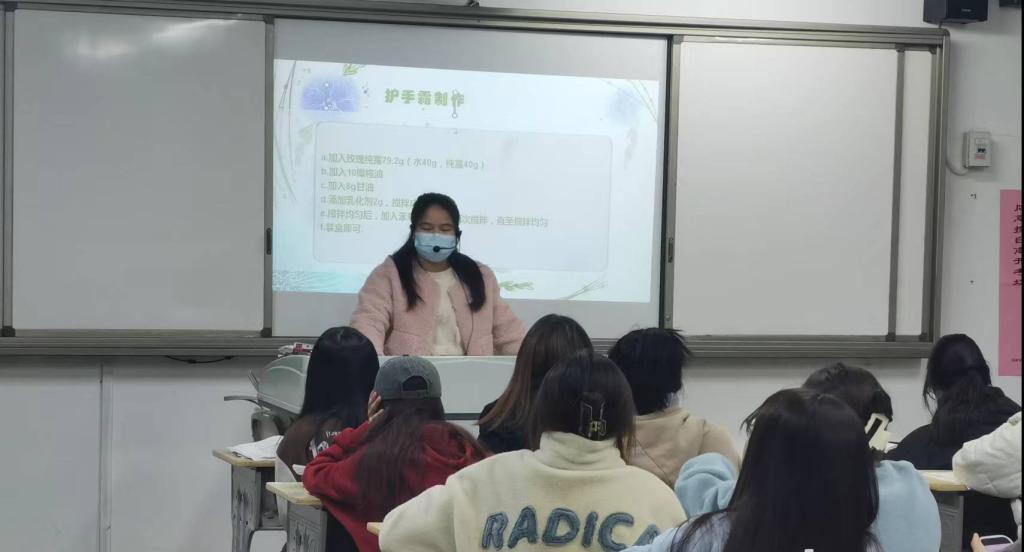 整个制作过程中,学生们充分体验了劳动的乐趣。他们不仅学会了制作护手霜的方法,还了解了每种材料的作用和功效,培养了实际动手能力和团队合作精神。为表达对老师的感激之情,学生代表为老师送上亲手制作的护手霜,并详细介绍了3种护手霜的功效和使用方法。