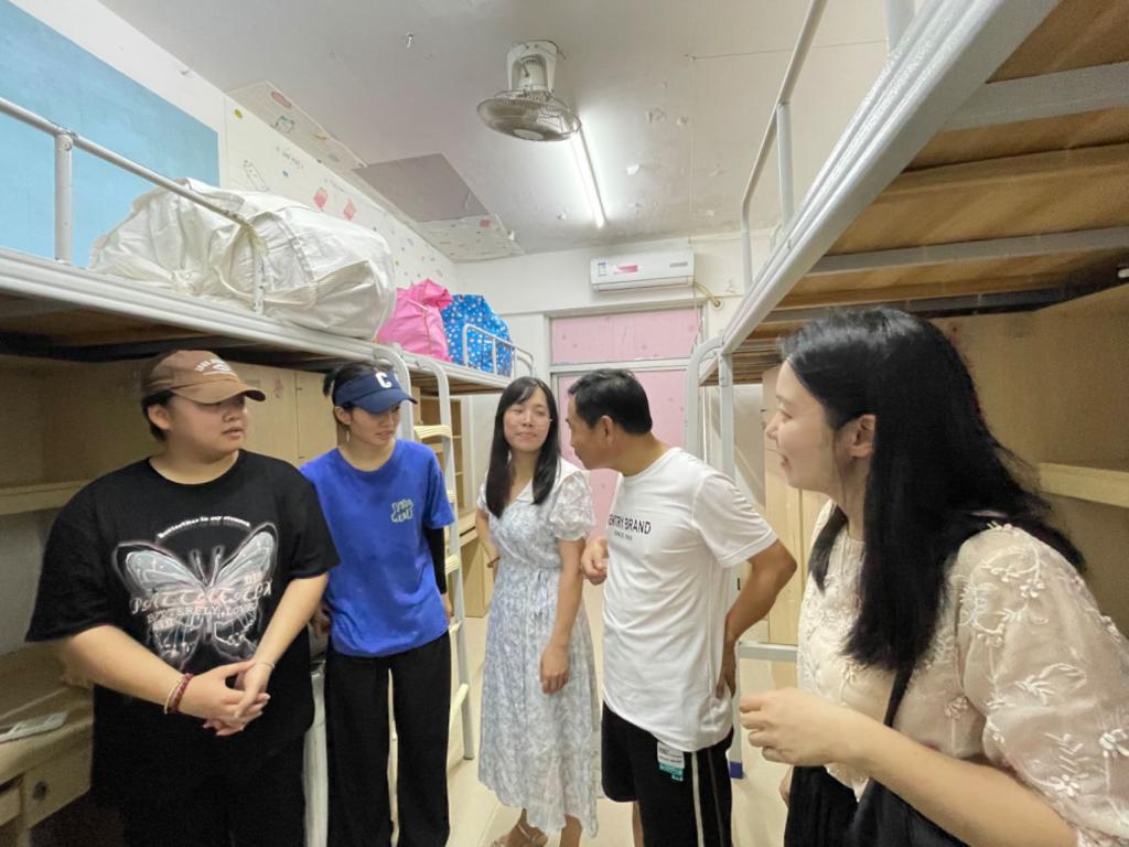 陈锦香副书记带领22级辅导员和全体班导师走进宿舍,为同学们送上慰问与关心。在走访过程中,辅导员们针对学生的心理和生活情况给予了专业的指导;班导师们在学生的日常学习和课程安排方面,提供了建设性的意见。