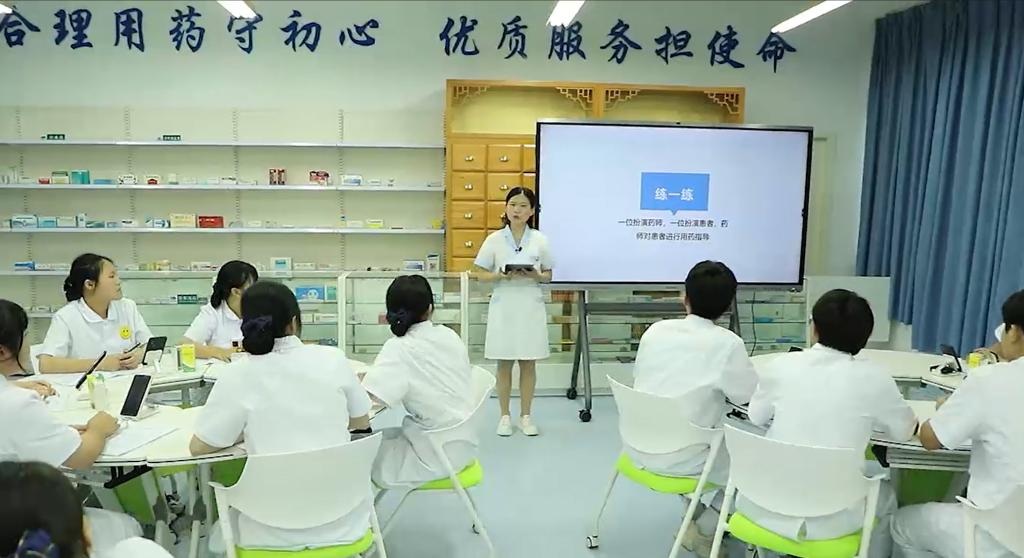 佘雪花老师以项目为载体,巧用“岗课赛证”综合育人模式,将慢病药学服务岗位技能要求、1+X证书职业技能标准及全国职业院校技能大赛药学技能赛项标准融入课堂教学,创设“药师开展慢病药学服务”的工作情境,引导学生通过“档案建立-用药指导-健康教育”等理实结合活动,将课堂所学与药师岗位工作结合,通过任务化、情境化、数字化结合的方式攻破教学重难点。