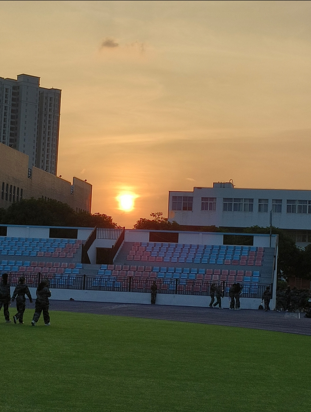 照片描述:照片描述了夕阳不只是夕阳,更是同学们热血的青春。
