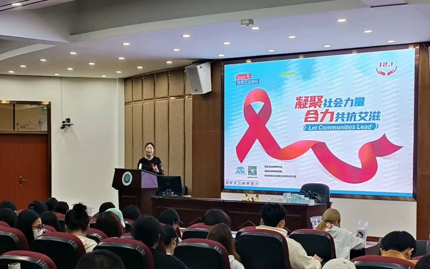 11月30日,医护学院在图书馆学术报告厅成功举办了“携手同行,共抗艾滋”专题讲座。此次讲座旨在进一步宣传艾滋病预防知识,帮助学生正确认识艾滋病,增强自我保护意识和社会责任感。原福建省疾病预防控制中心健康教育科科长、健康教育副主任技师徐瑜老师应邀出席,为同学们带来了生动、实用的讲座。医护学院副书记陈锦香、团委书记许璐颖出席本次讲座与同学们一起聆听徐瑜老师的讲解。