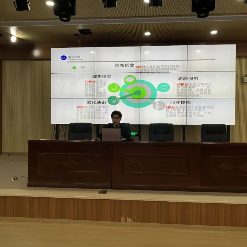 21级护理专业优秀学生蔡家进学长发言。蔡家进学长作为高中生上来的学生,解答同样高中升学的新生的困惑,并表示当代大学生应学会拒绝精神内耗,不要因为现在缺乏专业知识而感到焦虑,要努力学习提高专业水平。