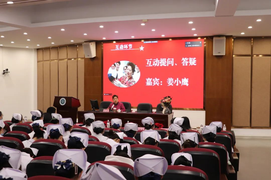 在互动环节中,姜小鹰教授热情地回答了师生们的提问,帮助他们解开了心中的疑惑。同时,她还鼓励学生们珍惜校园生活,努力学习理论知识和实践技能,并期待他们将来在护理领域大放异彩。