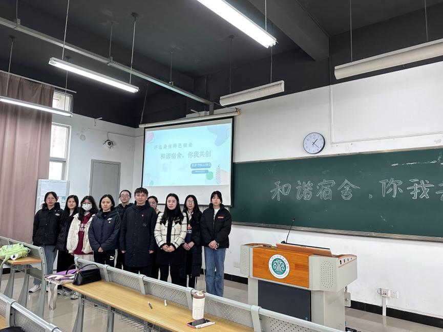 宿舍是大学生生活学习、休息娱乐、情感交流的重要阵地,也是学校精神文明的重要体现。为创建宜居宜学的宿舍环境,营造和谐友好的宿舍氛围,增强同学们宿舍的凝聚力,促进大学生素质全面发展。医护学院仓山校区于2023年12月21日举办了以“和谐宿舍,你我共创”为主题的最佳特色宿舍评选活动。本次评选活动由医护学院仓山校区自律会主办,自律会指导老师饶丽丽、辅导员许璐颖老师和辅导员闻迪老师参与评审。