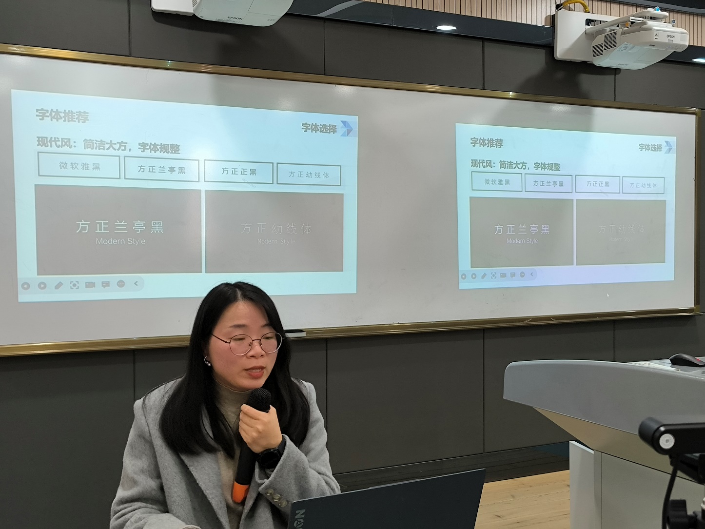 此次活动由中药学教研室陈云燕老师主讲。陈云燕老师详细介绍了如何通过运用PPT自带的模板、自定义背景图片等进行PPT封面的美化,同时分享了“使用专业的图片库”、“使用搜索引擎”等下载一些下载高质量图片的方法,并介绍了如何用AI功能进行图片的优化和推荐了Font Squirrel、FontSpace等免费字体资源。