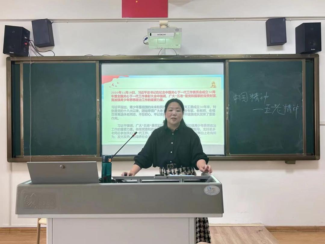茅朝霞老师以精心制作的PPT为辅助,生动阐述了“五老”精神的深刻内涵,即忠诚敬业、关爱后代、务实创新、无私奉献。她以鲜活的历史事例和感人的英雄事迹为引,让同学们在聆听中深刻体会到“五老”精神的时代价值,以及它对于青年学生成长成才的重要指导意义。