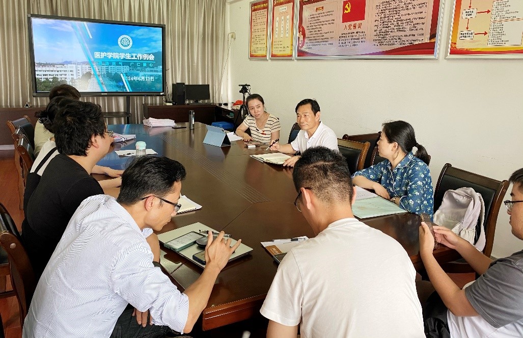 6月13日下午,医护学院在行政楼三层办公室召开2023-2024学年第二学期第七次辅导员工作例会。医护学院党总支副书记陈锦香、学院团委书记、学工办负责人许璐颖及全体辅导员参加会议,会议由陈锦香副书记主持。