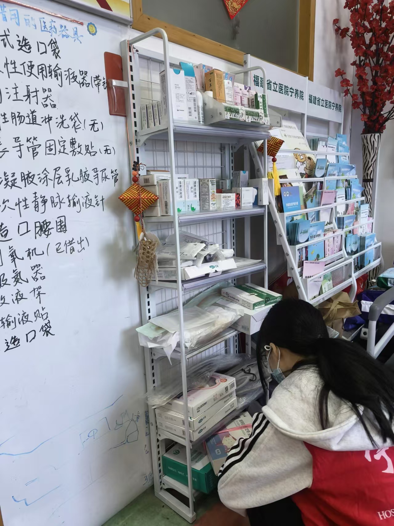 此外,志愿者们积极投身于药品整理工作,一丝不苟地核验药品名称与有效期,将药品按类别规范摆放,确保了医疗人员在紧急情况下能够迅速、准确地获取所需药品。同时,通过在小白板上进行明确的标识,使得患者及其家属能够清晰掌握可借用的医疗物资信息,有效提升了医疗服务的及时性和便利性,充分展现了志愿者们的责任感和奉献精神。