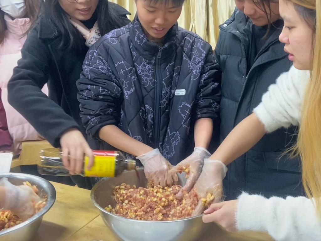 活动第一环节,同学们讲解了冬至的传统习俗,冬至作为中国重要的传统节日,蕴含着丰富的文化内涵,其习俗如北方吃饺子、南方吃汤圆等,都有着独特的寓意。随后大家开始分组包饺子比赛,各小组同学大显身手,创意无限,“最佳造型饺子” 纷纷亮相,有元宝状模样,亦有柳叶形状。一番激烈比拼后,“最快包饺子小组” 脱颖而出,现场其乐融融。