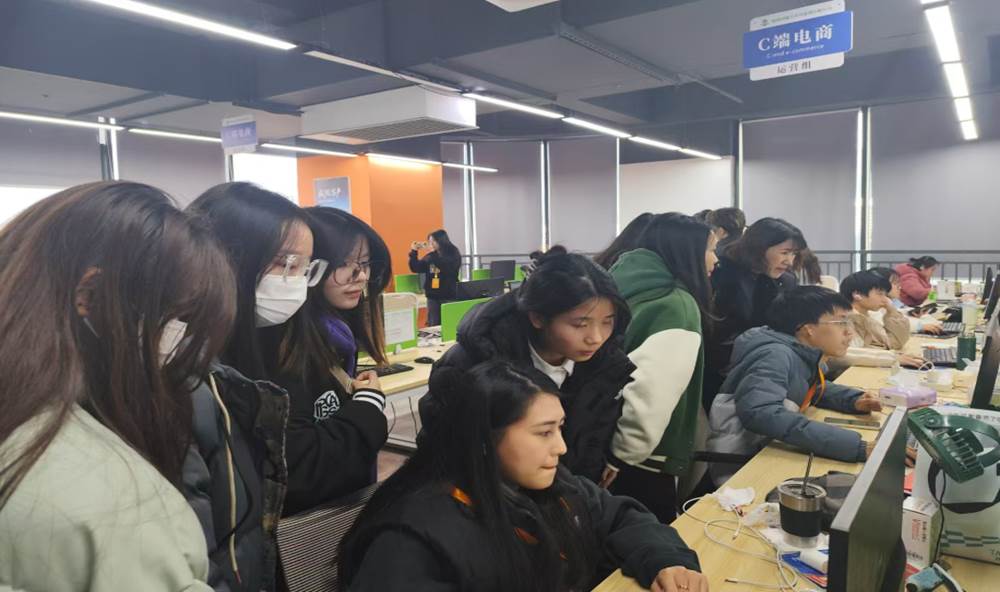 随后,学生们被分成两组,分别进入电商运营部和电销组进行参观学习。在电商运营部,学生们亲眼见证了从产品上架、营销策划到客户服务等一系列流程如何在数字化平台上高效运作。部门负责人详细介绍了大数据分析在选品、定价、促销策略制定中的应用,以及如何通过社交媒体和内容营销提升品牌影响力。同学们听得津津有味,不时提出自己的见解与疑问,现场互动热烈,学习氛围浓厚。