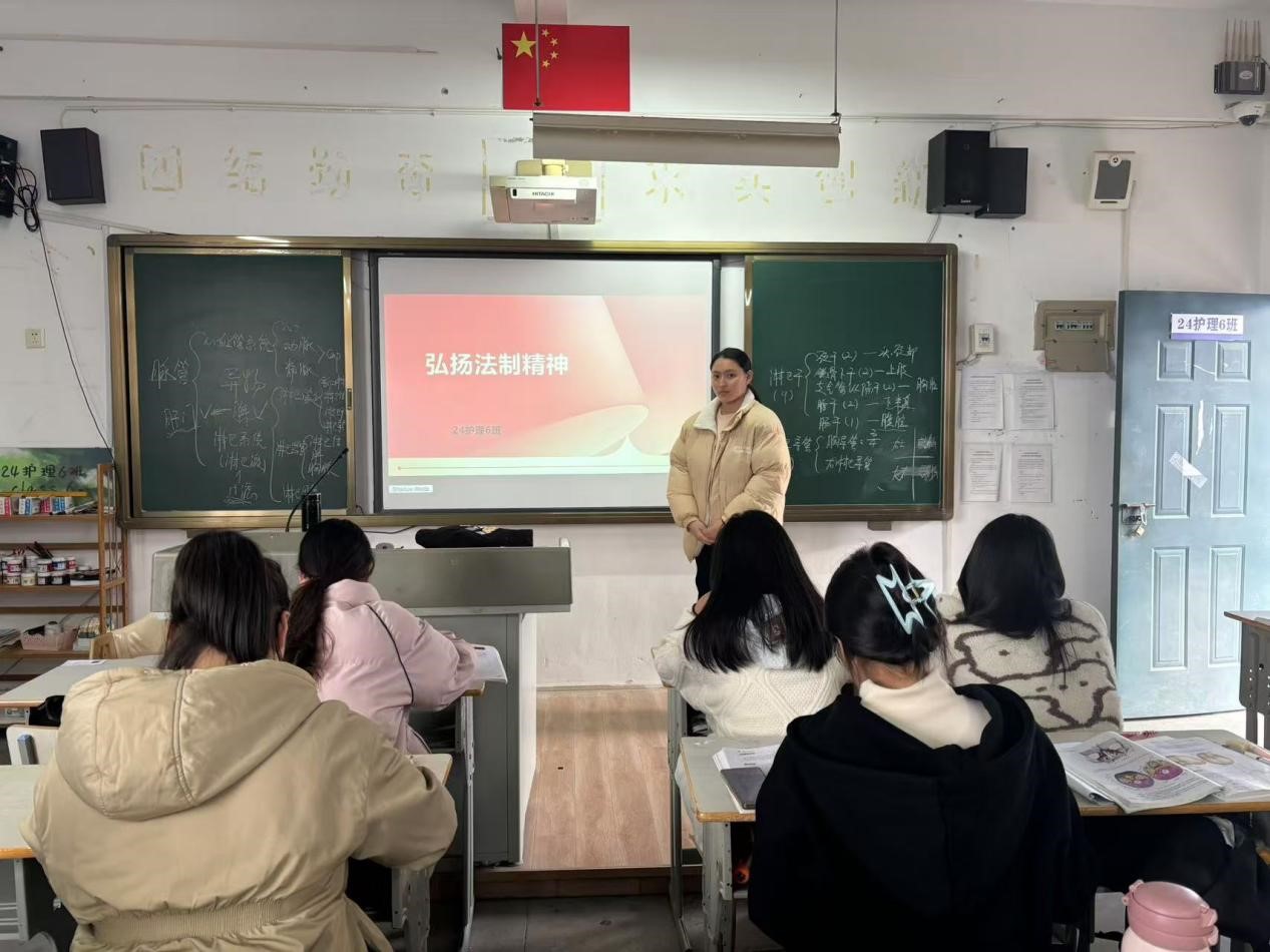 2024年12月20日,24 护理 6 班成功举办了一场以“崇法于心,践法于行”为主题的班会,旨在提升同学们的法律意识,强化法治观念,助力构建和谐校园与法治社会。