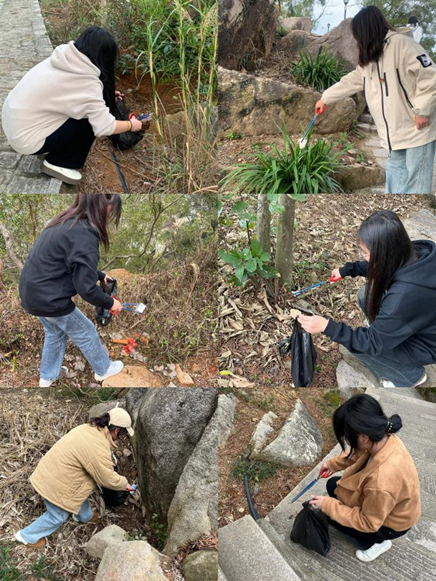 实践环节 团支书带领着同学们分成多个小组,志愿者手持垃圾袋、夹子等工具,仔细清理路面、草丛中的烟头、纸屑、塑料瓶等垃圾,不放过任何一个卫生死角。