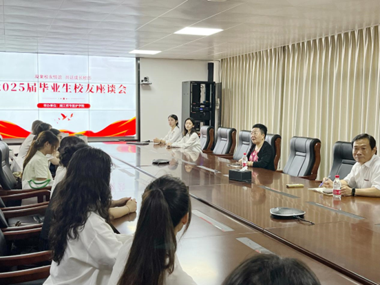 6月15日下午,医护学院在福清校区行政楼二楼会议室召开2025届毕业生座谈会暨校友联络人座谈会。学院党总支副书记张瑛、校友会会长陈锦香、学院团委书记许璐颖等教师及2025届校友联络人参加会议,