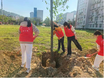 活动现场,党旗迎风飘扬。党员志愿者们热情高涨、干劲十足,挥锹铲土、扶苗填坑、提水浇灌,分工协作、默契配合。经过两个多小时的辛勤劳动,数十株新栽的树苗在福清校区“安家落户”,迎风挺立,生机盎然。
