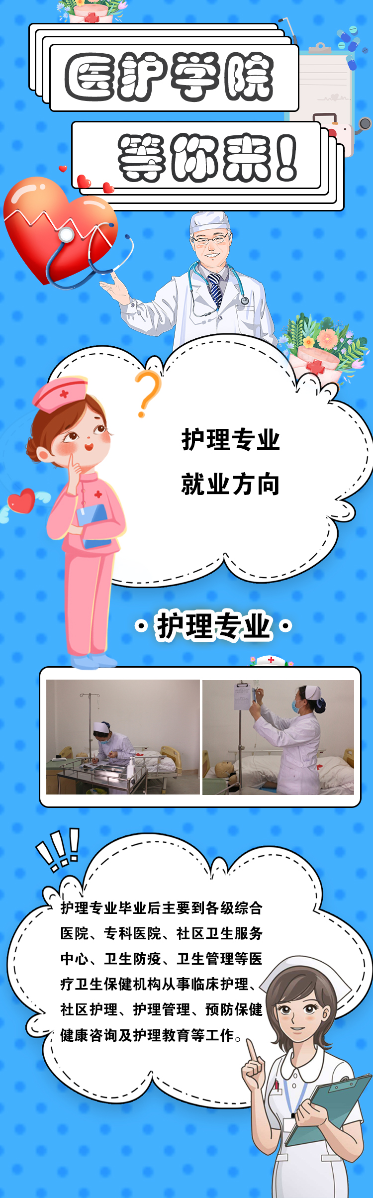 目前,我国医疗卫生人才紧缺,同时我国人口老龄化进程加快,现有医护人员难以满足社区医护、专业护理等新型护理模式的要求,许多医院、养老院、社区急需护理一类的专业人员,就读医护学院就业优势明显,学习护理等专业的毕业生拥有广阔的就业空间。