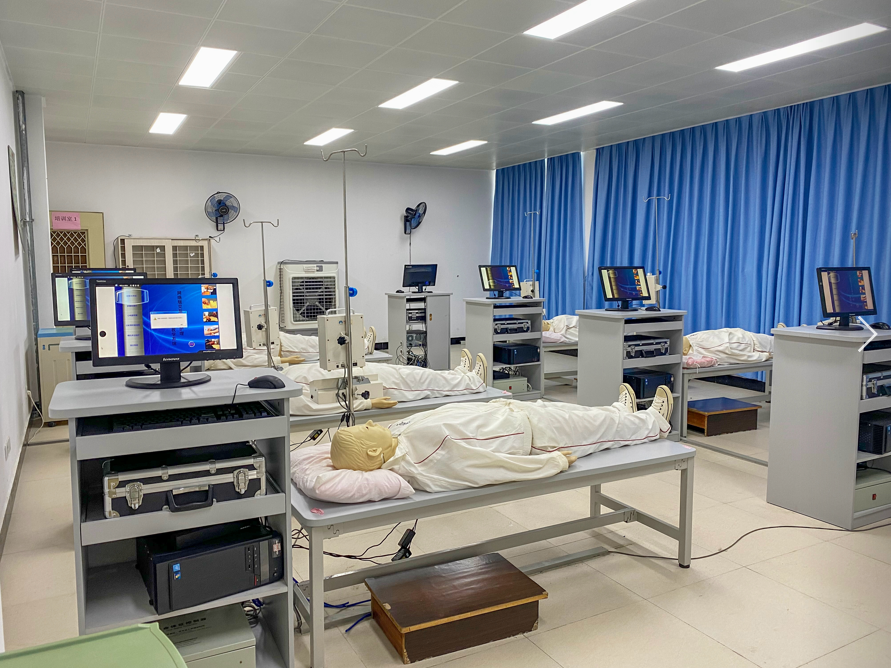 医护学院目前有护理实训室、虚拟仿真助产实训室、理疗室、中医馆、模拟病房、药房、模拟手术室及形体训练室等实训室,满足了学生基本技能、专业技能训练的需求。学生通过在实训室的系统训练,缩小了与临床的距离,保证较快适应临床毕业实习和就业上岗,满足用人单位和社会的需求。