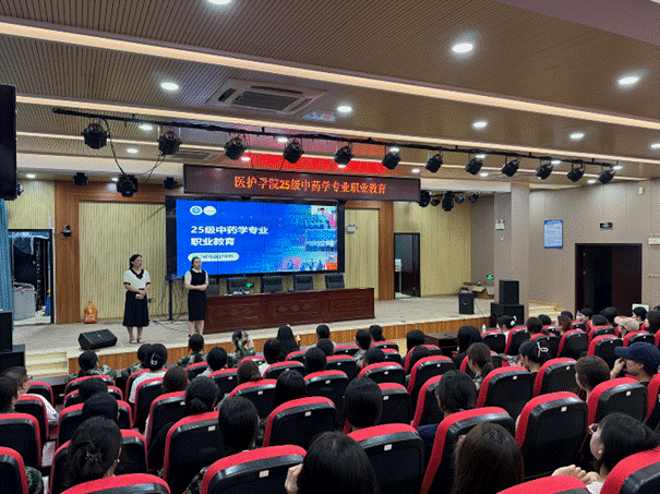 讲座伊始,林敏娜、陈云燕老师代表中药学教研室欢迎新生,随后佘雪花老师详细介绍医护学院中药学专业——涵盖办学历史、人培目标、岗位内容、发展方向及核心课程,并重点强调专业基础课重要性、实践技能锻炼路径与证书考取规划,为新生搭建专业认知框架,明确学习与发展方向。