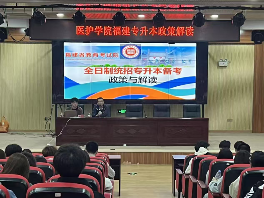 11月3日至4日,学院在福清校区及线上平台同步举办专升本政策解读讲座。活动分专业、分场次进行,系统解读福建省统招专升本政策细则、报考流程与院校选择,结合医护行业发展趋势分析就业前景,并现场为同学们答疑解惑,助力学子明确学历提升路径与职业发展方向。