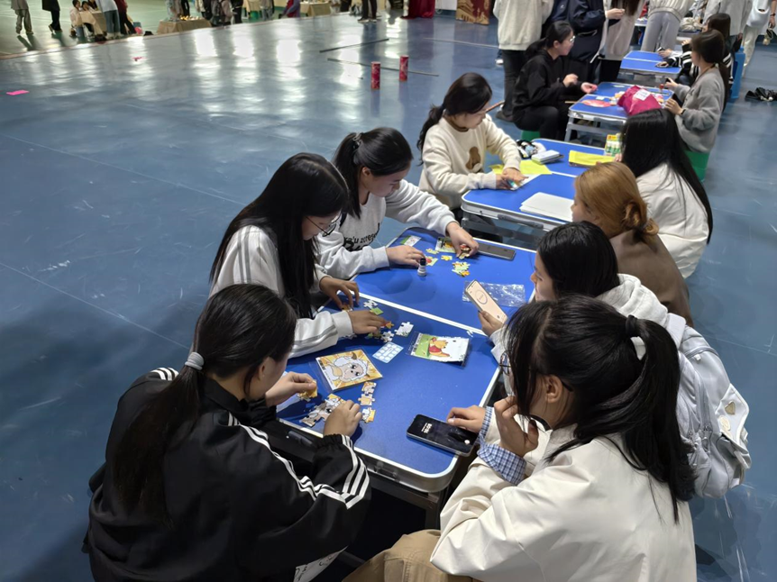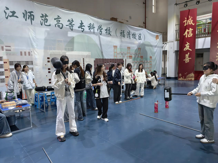 当晚,福清校区操场化身“解压乐园”,“解压充电站·轻松趣玩日”游园会热闹开启。拼图打卡、蒙眼躲锤、投壶体验等趣味项目吸引了大量学生参与,大家在欢声笑语中释放学习压力,尽情享受轻松时光。