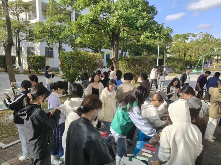 12月10日,“愿逆风知意,送岁岁安澜”年末祝福寄语活动在福清校区操场暖心举行。现场许愿树挂满五彩心愿笺,学子们提笔书写对同窗的勉励、对师长的感恩、对未来的期许,还通过互换卡片传递心意,让冬日校园洋溢着真挚温情。