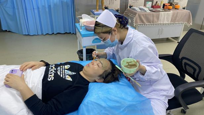 面对真实的服务场景,护理专业学生的专业功底与服务意识双双在线。穴位按摩精准到位,推、按、揉、提手法娴熟,根据老师的反馈灵活调整力度与节奏,在疏通经络中传递舒适感;面部全息刮痧循经施术,搭配专业介质轻柔调理,以淡淡的红晕见证排毒提亮的效果;中药面膜敷贴对症施策,补水、美白、舒缓、祛痘等功效型中药面膜精准适配需求,敷贴期间的头部按摩更添暖心细节;搭配冬日养生茶饮功效,助力内外协同调理,让养护更全面。