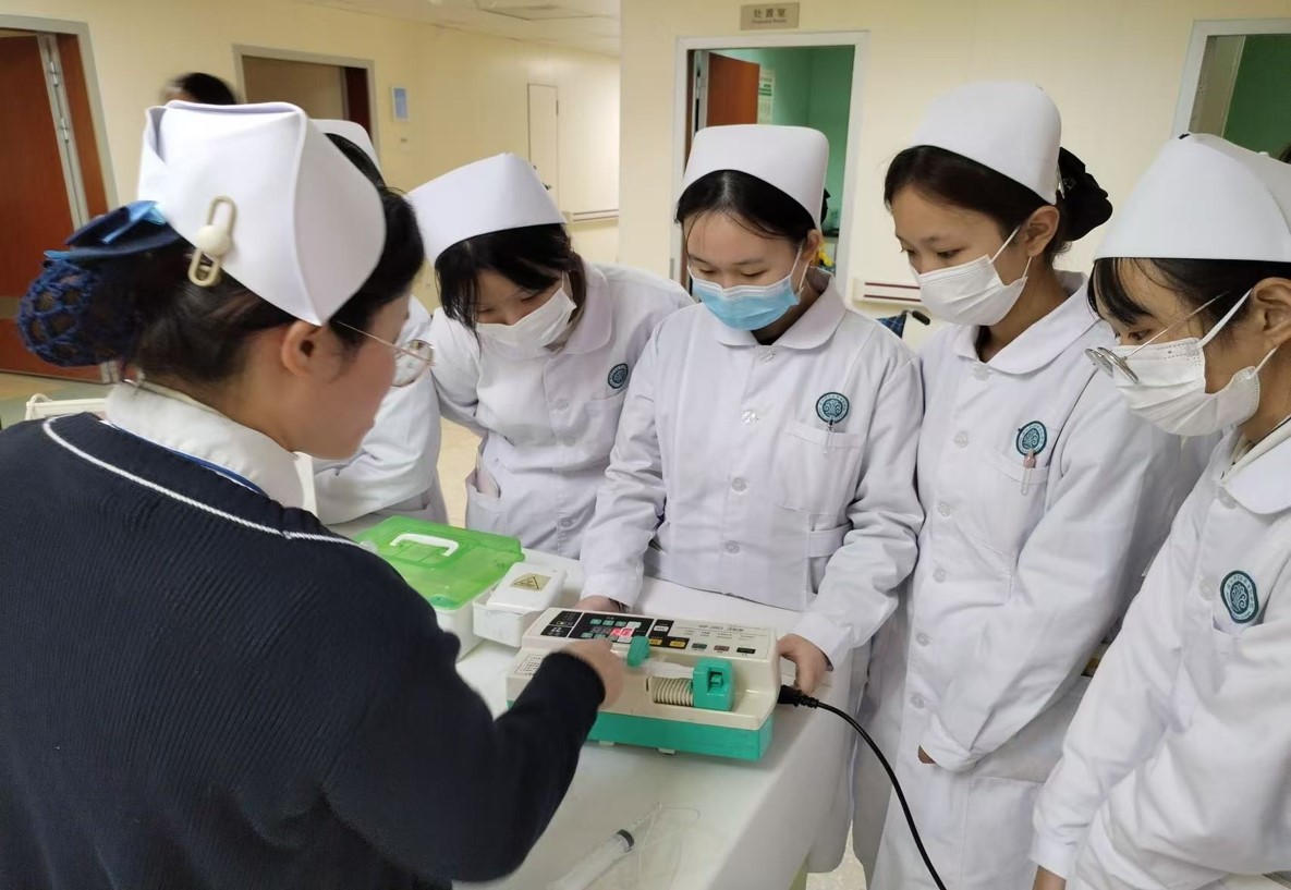 同学们身着整洁的护士服,满怀期待地跟随带教老师走进了骨科病房,开始了他们期待已久的查房过程。带教老师一边介绍病房环境,一边带领同学们逐一查看患者的情况。查房过程中同学们跟着带教老师仔细观察着患者的伤口恢复情况,听着带教老师详细讲解手术过程、术后护理及康复要点。
